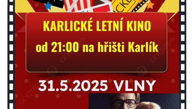 Karlické letní kino: Vlny31. května 2025 od 21:00 hodinKino, Karlík, 16. 5. 2025 Lucie Hochmalová Promítání filmu Vlny si užijete 31. května od 21 hodin na hřišti v Karlíku. Vstupné je dobrovolné. Občerstvení bude k dispozici, dobroty z vašich kuchyní jsou vítány.