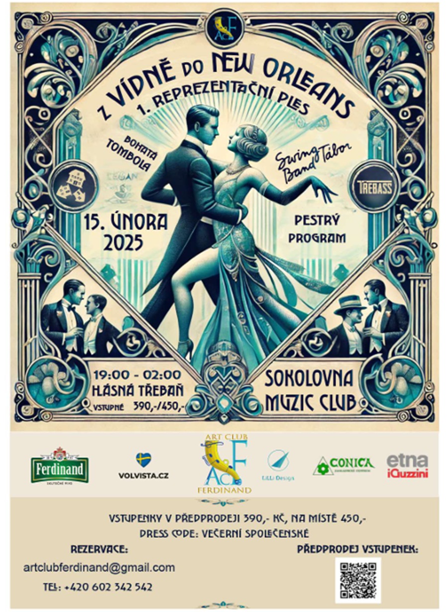 První reprezentační bál Art Clubu Ferdinand se uskuteční 15. února v 19 hodin v sokolovně v Hlásné Třebani. Fantastický Swing band Tábor vás provede tanečními žánry od valčíků po rokenrol.