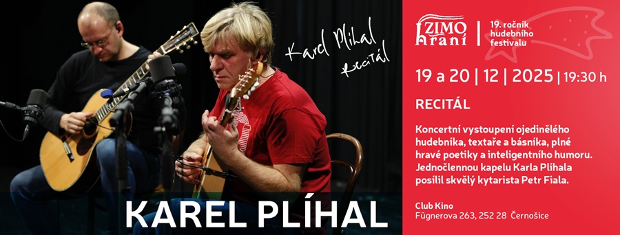 Poslední listopadový den v Černošicích startuje již 19. ročník festivalu Zimohraní. I letos bude finále patřit pravidelnému hostu Karlu Plíhalovi. Jeho recitál bude na programu hned dva koncertní večery 19. a 20. prosince, vždy od 19:30 hodin.