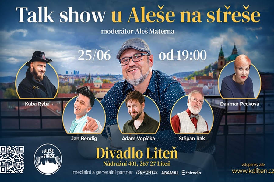 LITEŇ – Talkshow U Aleše na střeše znovu přivítá slavné hosty. Přijďte se pobavit 25. června v 19 hodin do liteňského kulturního domu, kde bude mít svou show významný hudební redaktor Aleš Materna.