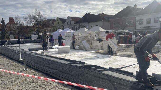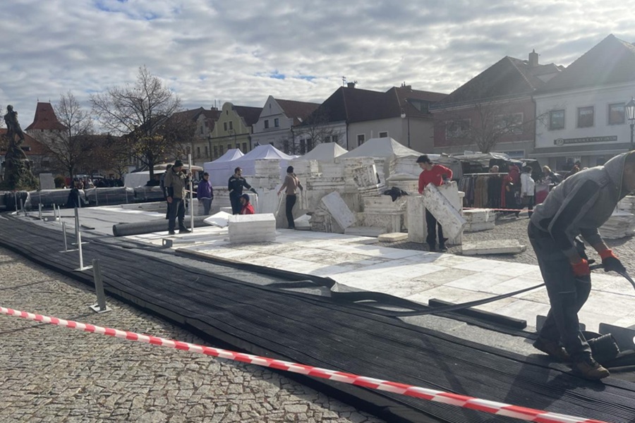 BEROUN – Tento týden probíhá instalace oblíbeného kluziště na berounském Husově náměstí. Oproti loňskému roku se radnice rozhodla umístit ledovou plochu do „horní“ části náměstí, mezi pomník Záboje a kašnu.