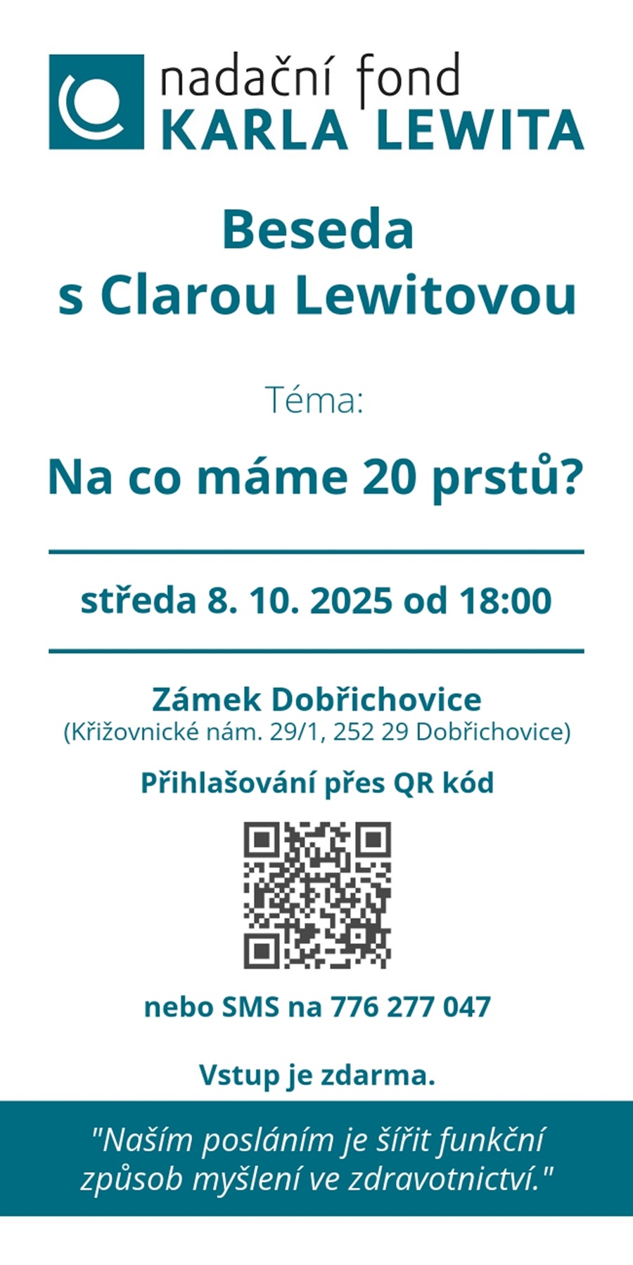 Přihlásit se můžete v sms na 776 277 047 nebo přes QR kód níže. Besedu pořádá Nadace Karla Lewita.