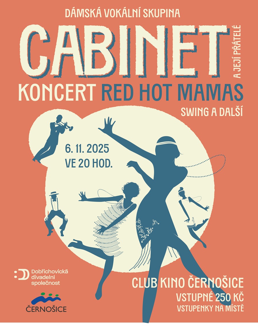 ČERNOŠICE – Koncert dámské vokální skupiny Cabinet s názvem Red Hot Mamas se bude konat 6. listopadu ve 20 hodin v černošickém Club Kině. Těšit se můžete na večer v rytmu swingu, písní divadla Semafor i legendárního Jaroslava Ježka.