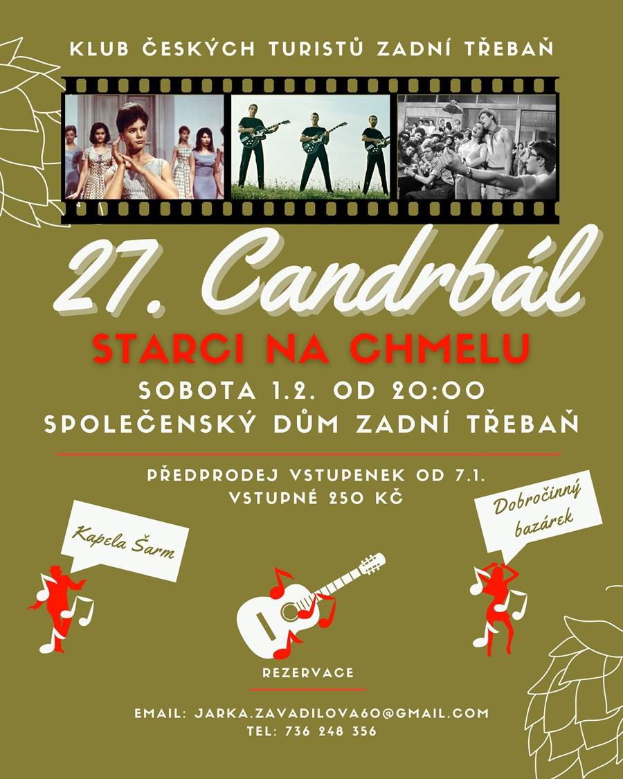 ZADNÍ TŘEBAŇ – Turistický Candrbál, který připravuje zadnotřebaňský Klub českých turistů, se bude konat již po sedmadvacáté. Zájemci se mohou přijít pobavit v sobotu 1. února ve 20 hodin do Společenského domu v Zadní Třebani.