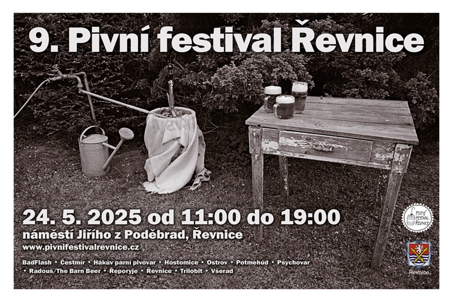 Na řevnickém náměstí Krále Jiřího z Poděbrad čeká v sobotu 24. května od 11 hodin nabídka 13 pivovarů, vybrané občerstvení i hudební lahůdky. Pořadatelé letos vsadili na osvědčené pivovary z let minulých. Z blízkého okolí přijedou Hostomice, Všerad a Matuška, samozřejmostí je účast místních z Pivovaru Řevnice a Psychovaru. Z Prahy dorazí Bad Flash, který zatím nevynechal ani jeden ročník, jakož i Potmehúd, Řeporyje a Trilobit. Z přespolních se předvedou Radouš/The Barn Beer, Hákův parní pivovar a Čestmír. Jediným nováčkem v sestavě bude létající pivovar Ostrov. Chybět nebude ani tradiční stolek domovarníků, kteří představí své výrobky.