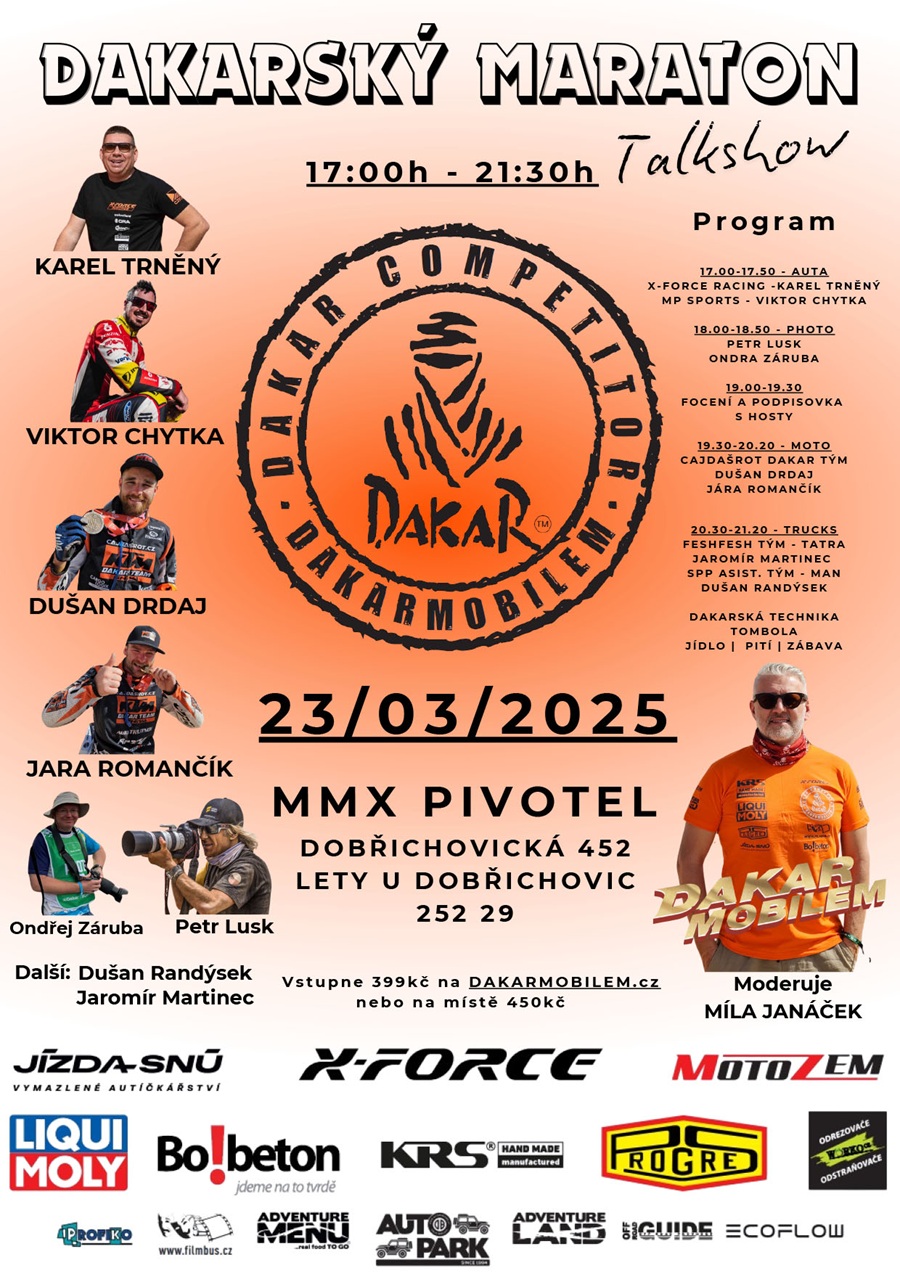 LETY – Dakar mobilem vás zve na jedinou, ale zato mega talkshow. Velkolepá akce se koná 23. března od 17 hodin v pivotelu MMX.