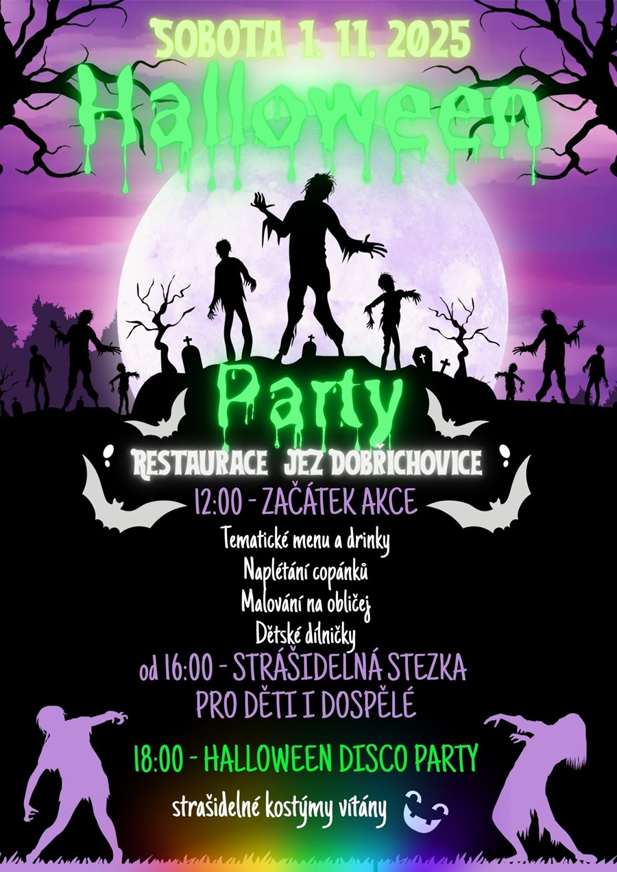 DOBŘICHOVICE – Halloween party s bojovkou a diskotékou pro děti i dospělé si všichni mohou užít v sobotu 1. listopadu v restauraci Jez v Dobřichovicích. Akce začne ve 12 hodin.