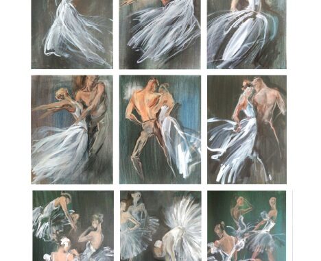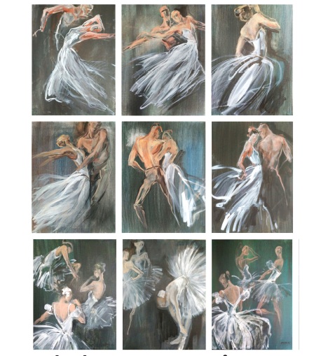 Snažím se do obrazů zachytit vzpomínky a záblesky z prostředí baletních vystoupení, takové „před oponou a za oponou“. Je to osobní výzva, co dokážu na obraze sdělit. Místo zaslouženého klidu si připravují pěkný adrenalin.