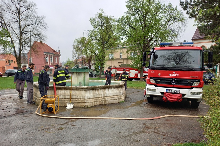 ŘEVNICE – Kašna na náměstí Krále Jiřího z Poděbrad v Řevnicích prokoukla. Stalo se tak díky místním dobrovolným hasičům, kteří ji vyčistili a poté naplnili vodou. Nyní tak kašna opět lahodí oku každého kolemjdoucího.