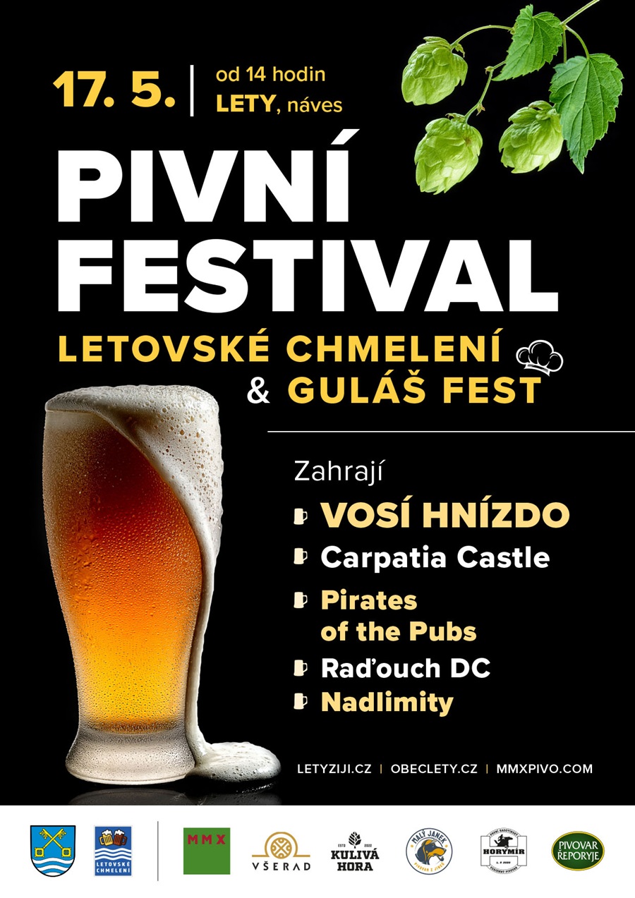 Letovské chmelení začne ve 14 hodin. Zahrají vám kapely Vosí hnízdo, Carpatia Castle, Pirates of the Pubs, Raďouch DC a Nadlimity. Guláš se bude zapíjet pivem z pivovarů MMX, Všerad, Kulivá Hora, Malý Janek, Horymír a pivovar Řeporyje.