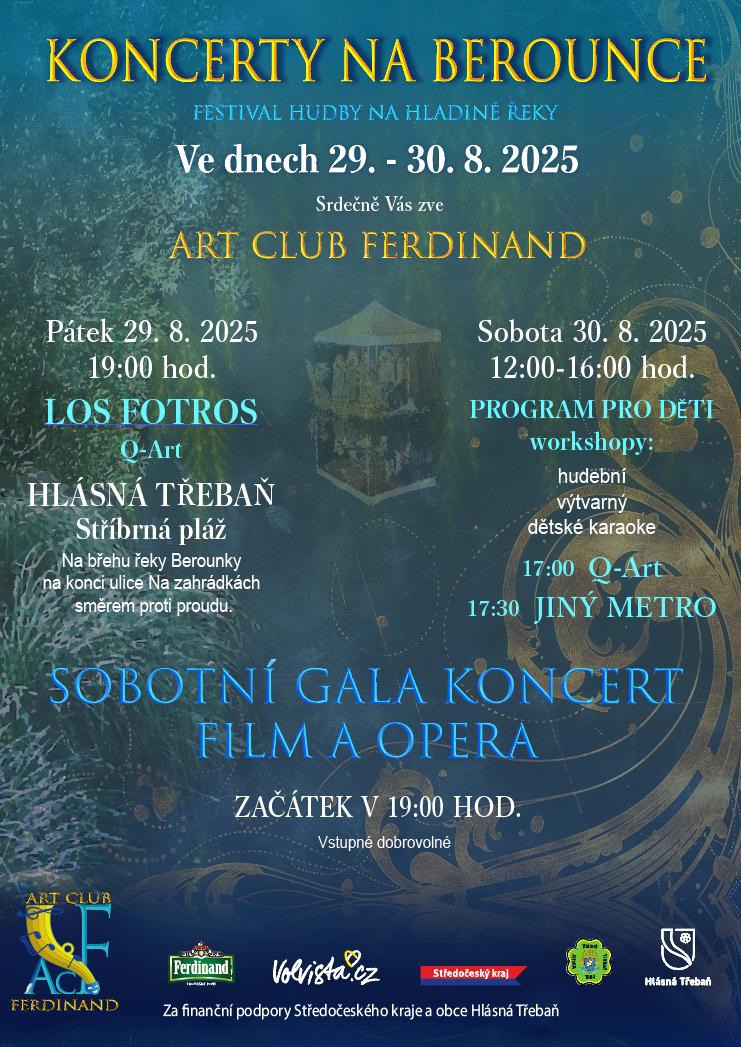HLÁSNÁ TŘEBAŇ – Další ročník koncertu na Berounce se bude konat 29. a 30. srpna na Stříbrné pláži v Hlásné Třebani. Koncerty začnou po oba dny v 19 hodin a pořádá je místní Art Club Ferdinand.