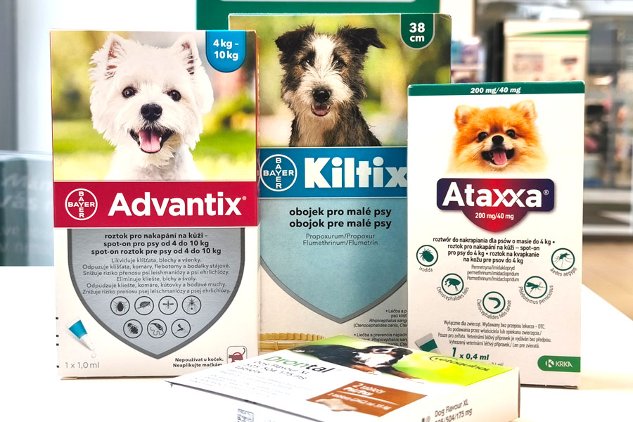 Ode dne, kdy vstoupíte do naší lékárny, si můžete být jisti, že vaše kočka, pes či jiný domácí mazlíček budou ve skvělé formě. Nabízíme totiž celou škálu „zbraní“ proti blechám, klíšťatům a všem parazitům, kteří narušují jejich jinak pohodový život. Od šamponů a sprejů přes antiparazitní obojky až po tablety. S nimi hravě zvítězí nad nevítanými návštěvníky!