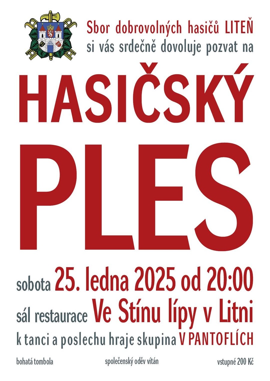 LITEŇ – Dobrovolní hasiči z Litně pořádají v sobotu 25. ledna svůj tradiční hasičský ples. Zatančit si můžete přijít od 20 hodin do sálu restaurace Ve Stínu lípy.