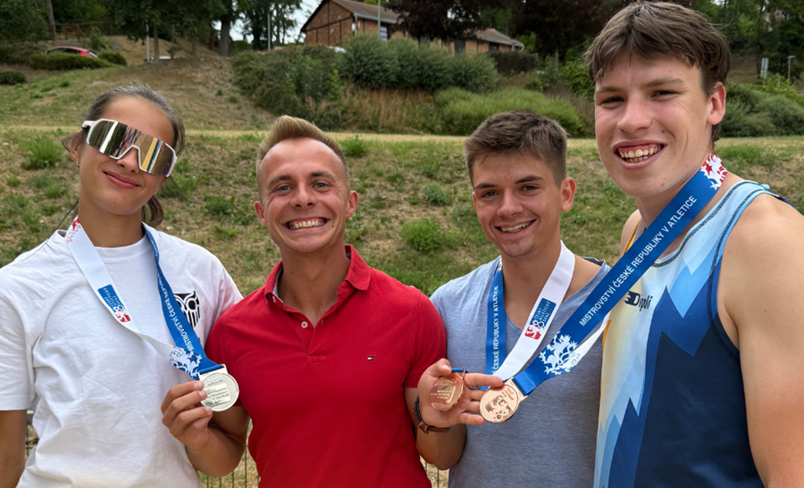 Trojici doplňují běžci, kteří vybojovali 9. místa. Adam Koukal v běhu na 3 000 metrů překážek a Matyáš Urban v běhu na 5 000 metrů. „Tři medaile z jednoho šampionátu – to je pro náš klub skvělý výsledek. Ukazuje to na kvalitu přípravy i na sílu celé generace. Všichni účastníci si zaslouží pochvalu,“ hodnotí výpravu trenér Tomáš Vodička.