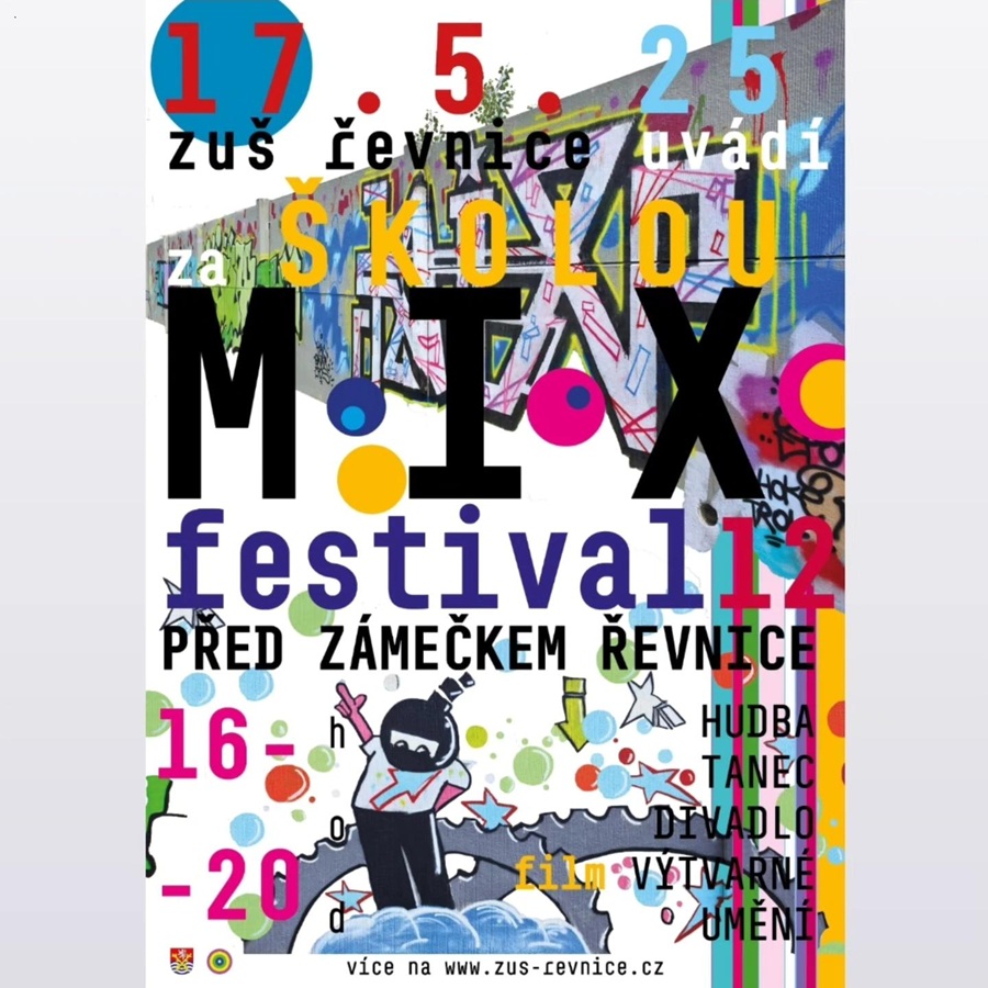 ŘEVNICE – Základní umělecká škola v Řevnicích pořádá v sobotu 17. května již 12. ročník MIX festivalu, letos na téma Za školou. Akce, kde se představí žáci všech oborů, tedy hudebního, tanečního, dramatického i výtvarného, začne u řevnického Zámečku v 15.30 hodin.