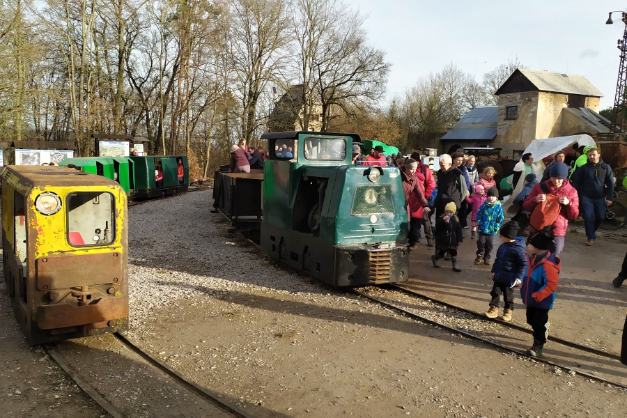 Projížďky na úzkorozchodné železnici pořádají v Solvayových lomech ve Svatém Janu pod Skalou. Skanzen se sice ponořil do zimního spánku, ale trať i občerstvení na konci roku ožijí. Volně se budete moci pohybovat také po areálu a za pěkného počasí doporučujeme některou z vycházek do okolí.