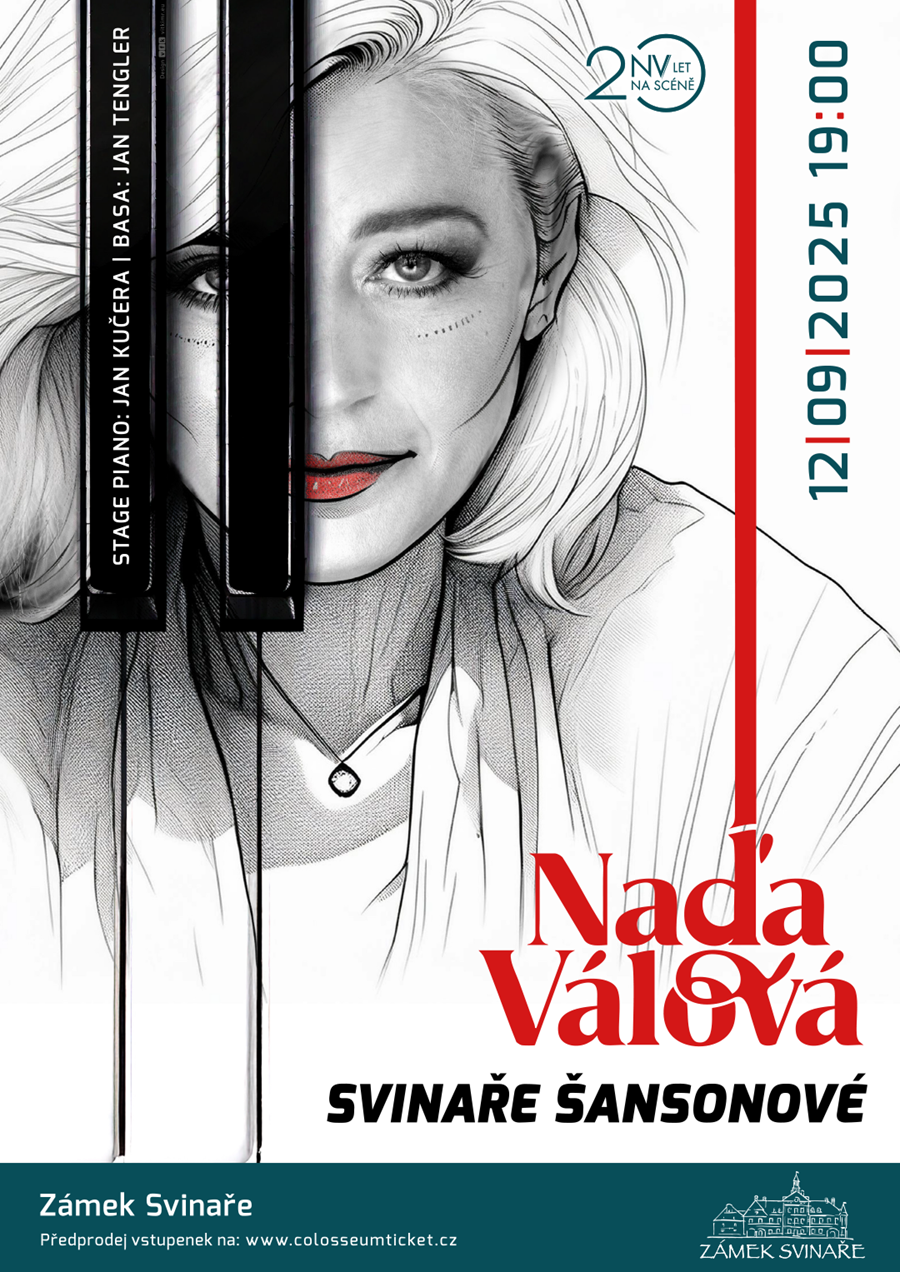 SVINAŘE, SKALKA – Dva koncerty zpěvačky Nadi Válové nás v nejbližší době čekají v našem okolí. 30. srpna bude Naďa Válová zpívat na Skalce u Příbrami a 12. září pak na zámku ve Svinařích.