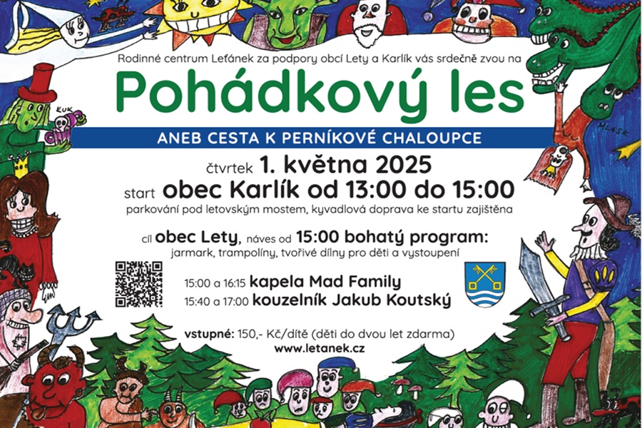 LETY, KARLÍK – Pohádkový les vás letos dovede k perníkové chaloupce. A kdy se můžete vydat na cestu? Ve čtvrtek 1. května, start je mezi 13. a 15. hodinou v Karlíku, cíl pak v Letech na návsi