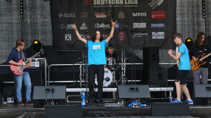 DOLNÍ POBEROUNÍ – Parta kluků z Dobřichovic a Řevnic má počátky v roce 2018. „Byli jsme ve 4. třídě ZŠ. V takhle mladém věku by nás samozřejmě nenapadlo založit kapelu. Dohromady nás dala máma Šimona Bělíka Gábina. Na starosti si nás vzal učitel ze ZUŠ Jan Peš. Je s námi až doteď a právě díky němu kapela funguje. Takže, Honzo, díky!“ vzpomíná na začátky šestnáctiletý Martin Kudrna. Hraje na elektrický saxofon. Jeho nerozlučnými parťáky jsou Vítek Němeček (17 let, zpěv), František Knaibl (17 let, elektrická kytara), Jáchym Král (16 let, baskytara) a David Kubát (13 let, bicí).