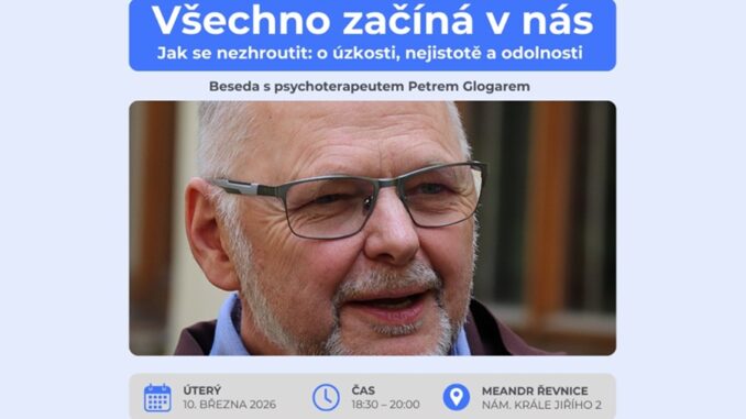 ŘEVNICE – Publicista Josef Beránek s psychoterapeutem a katolickým knězem Petrem Glogarem budou hosty další z besed, které pořádá řevnická pobočka České křesťanské akademie. Pod názvem Všechno začíná v nás se uskuteční v úterý 10. března od 18:30 hodin v řevnickém coworkingovém centru Meandr na náměstí Krále Jiřího z Poděbrad.