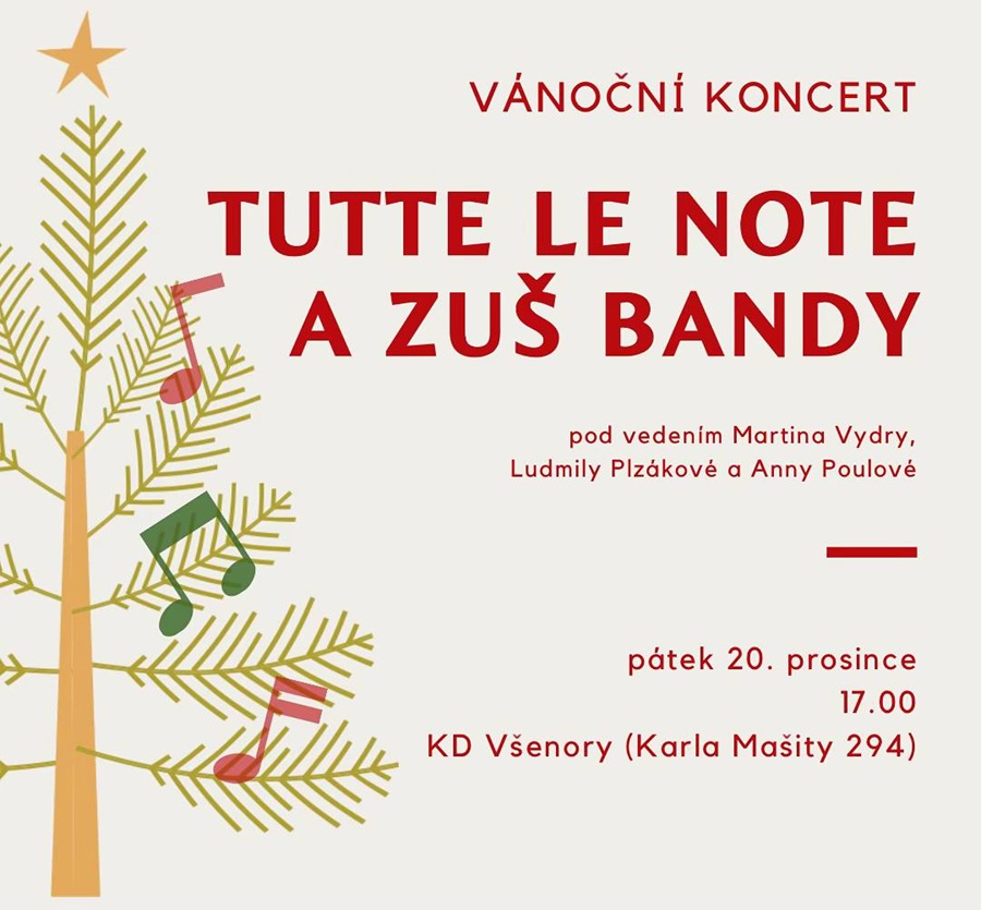 VŠENORY – Chcete se naladit do vánoční pohody? Pak přijďte na koncert Dětského pěveckého sboru Tutte Le Note a ZUŠ Bandy z Černošic, který se koná v pátek 20. prosince od 17 hodin v Kulturním domě ve Všenorech.