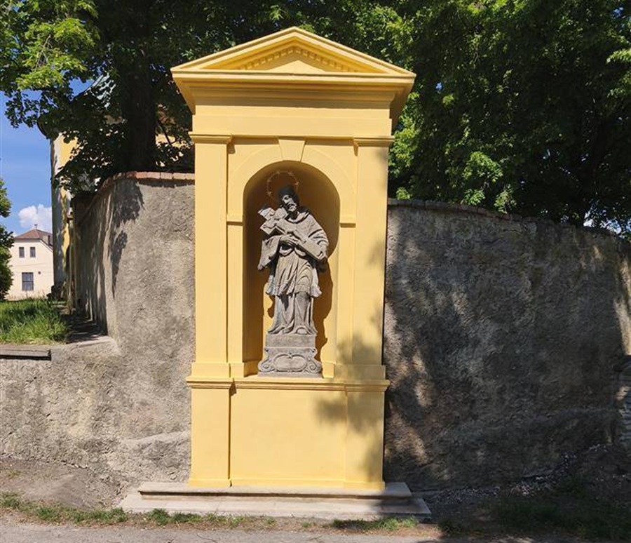 LITEŇ – Socha sv. Jana Nepomuckého je po úspěšné rekonstrukci znovu na svém místě, ve výklenkové kapli, která je součástí hřbitovní zdi v sadech Svatopluka Čecha v Litni. Rekonstrukce sochy a kapličky stála kolem 400 tisíc korun.
