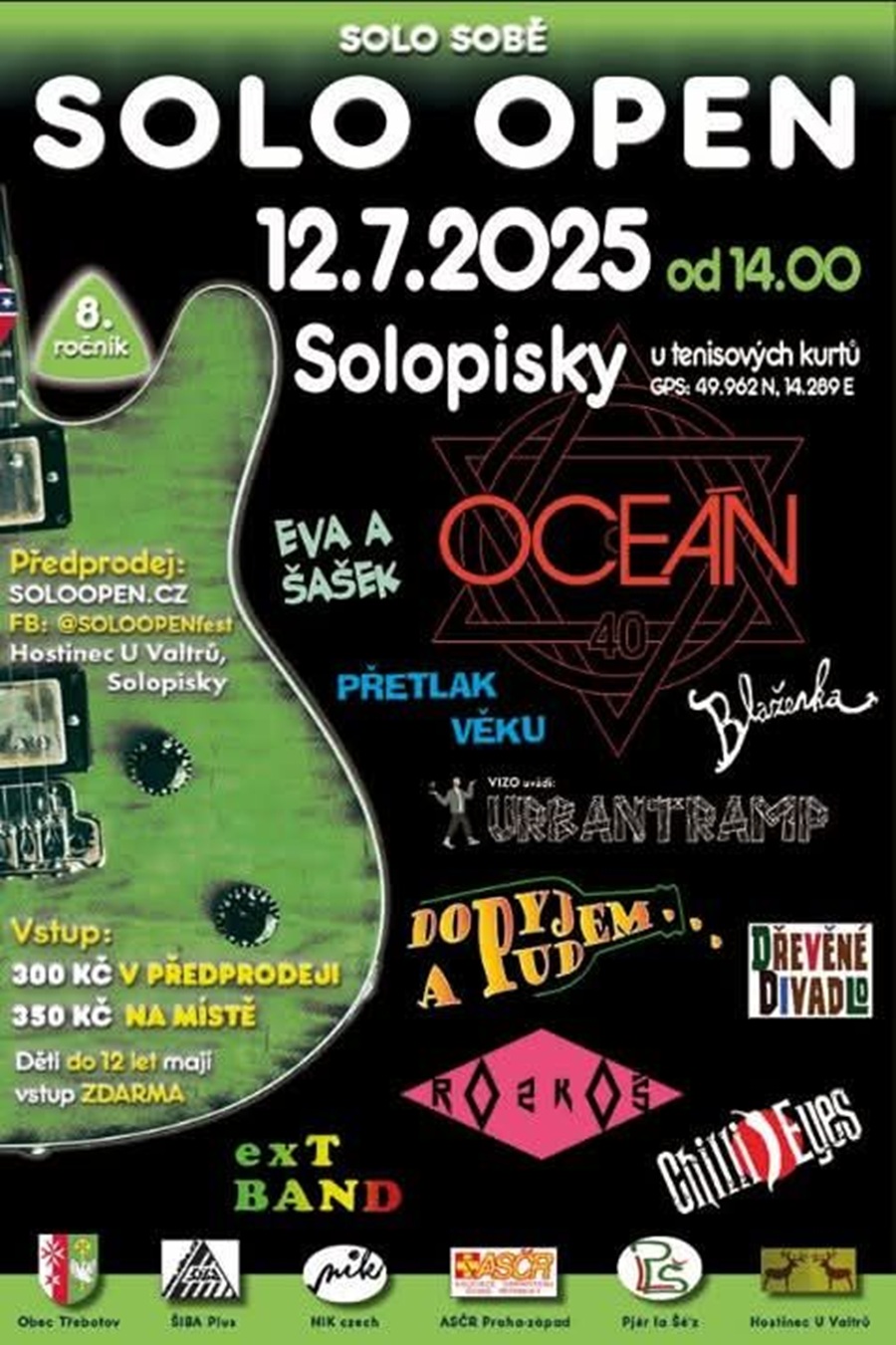 SOLOPISKY – Osmý ročník hudebního festivalu SOLO OPEN se koná 12. července od 14 hodin u kurtů v Solopiskách. Tato komunitní akce vychází z tradičního poznatku Co Čech, to muzikant.