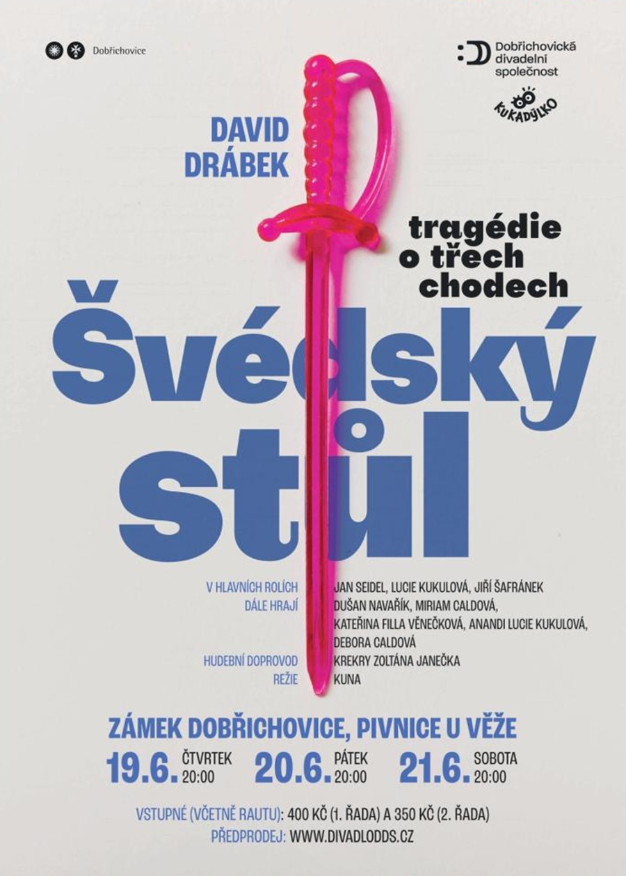 DOBŘICHOVICE – Tragédie o třech chodech. To je podtitul hry Švédský stůl, kterou letos v repríze uvede Dobřichovická divadelní společnost. Hraje se 19., 20. a 21. června od 20 hodin U Věže v Dobřichovicích.