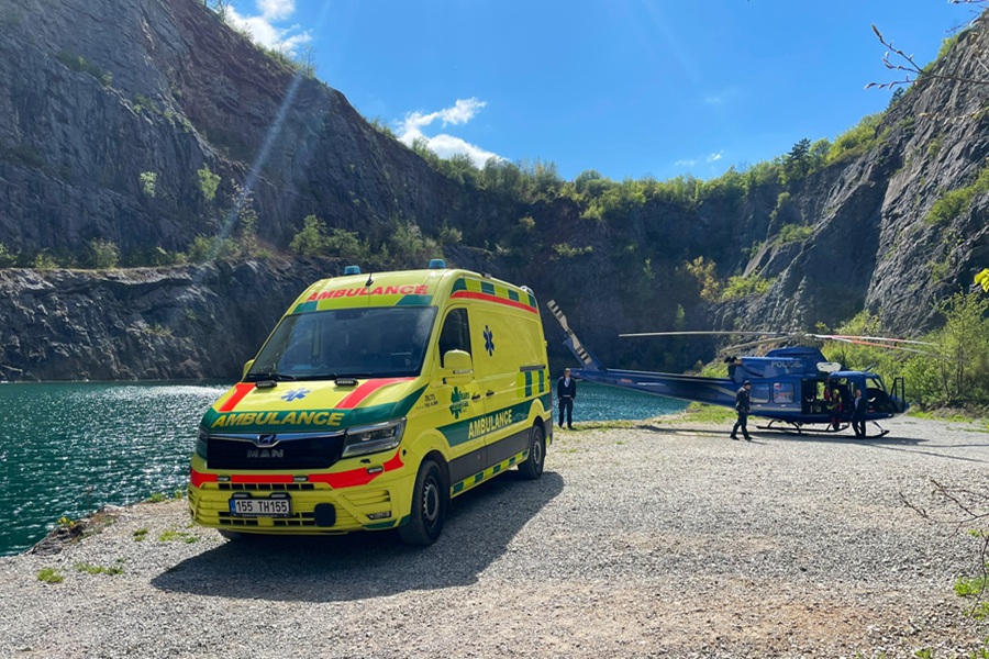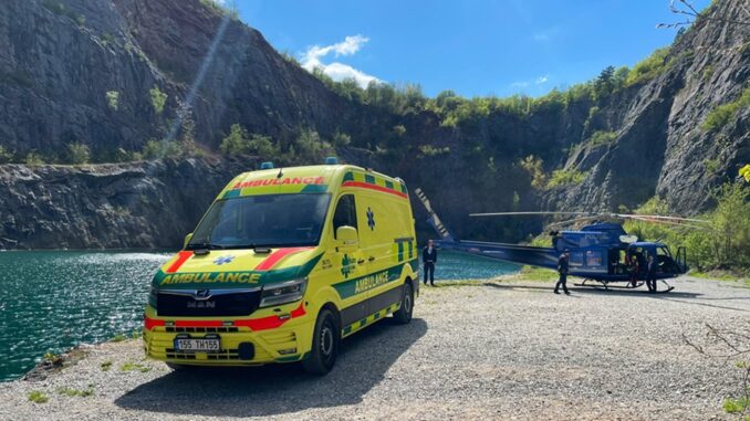 Záchranná služba a vrtulník při zásahu v lomu Foto: Trans Hospital Plus - X