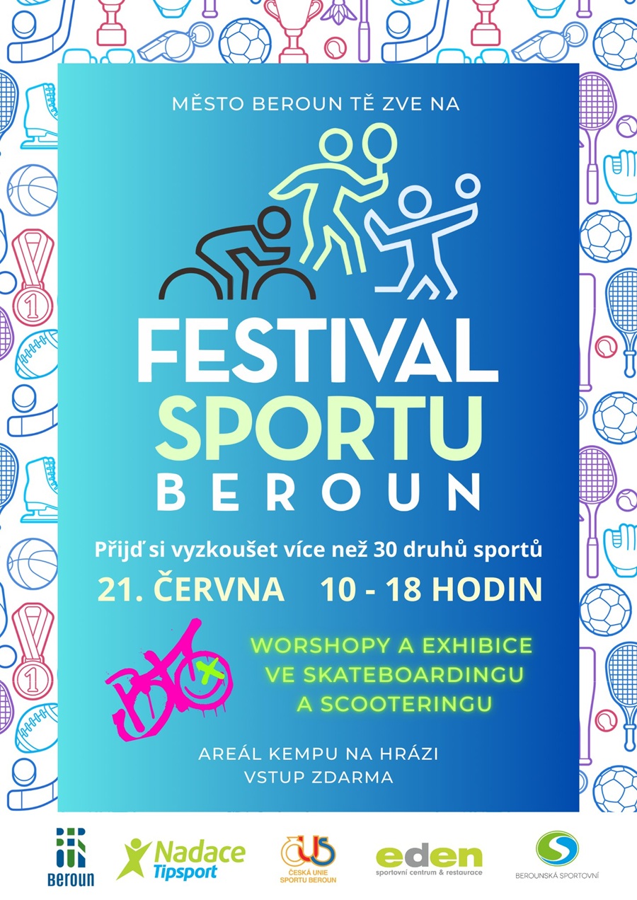 BEROUN – Vyzkoušet si na tři desítky sportů mohou zájemci na Festivalu sportu, který se v sobotu 21. června uskuteční v Berouně. V berounském kempu Na Hrázi se festival otevře pro děti ze škol a školek již v pátek 20. června.