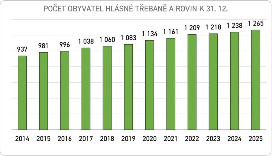 HLÁSNÁ TŘEBAŇ – V Hlásné Třebani bylo k 31. prosinci 2025 nahlášeno celkem 1 265 lidí s nahlášeným trvalým pobytem, což je o 27 více než v roce předchozím. Díky tomu obec získala více peněz do svého rozpočtu.