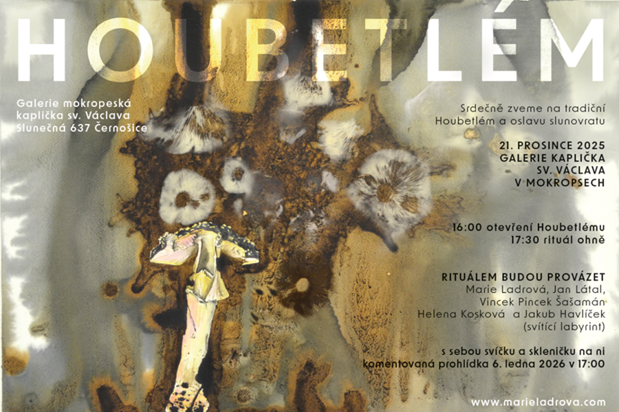 MOKROPSY – V mokropeské kapličce letos opět vznikne originální Houbetlém. Každoročně ho tvoří akademická malířka Marie Ladrová. Letošní slunovratový Houbetlém mohou zájemci vidět 21. prosince v 16 hodin a následně pak ještě na Tři krále v úterý 6. ledna od 17 hodin.