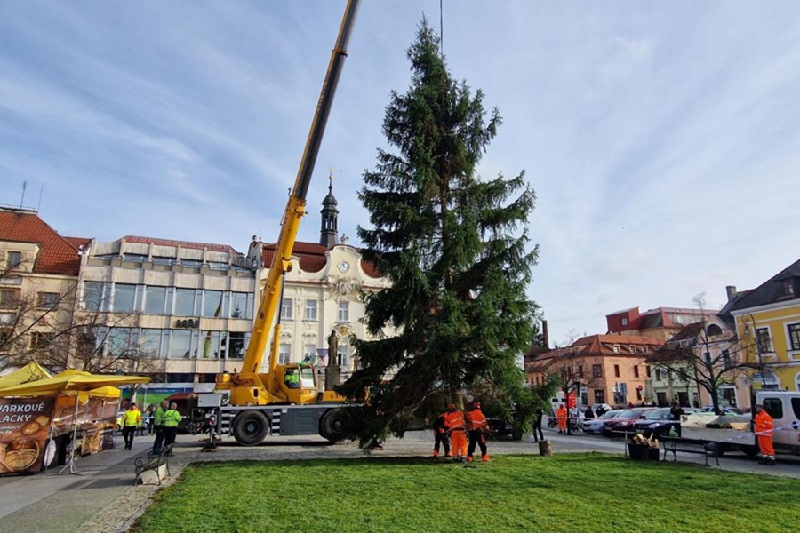 BEROUN – Berounské Husovo náměstí zdobí od 18. listopadu tradiční vánoční strom. Jedná se o smrk ztepilý pocházející z lesa u Lhotky. Ze stejné lokality dorazil dnes také strom určený pro Velké sídliště u Hvězdy.