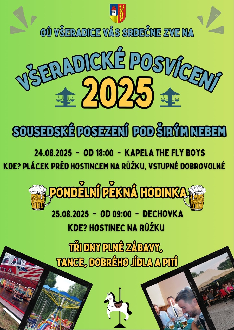 VŠERADICE – Sportovní zápasy, zábavný program včetně diskotéky a posezení pod širým nebem čeká na návštěvníky letošního Všeradického posvícení. Uskuteční se 23. a 24. srpna.